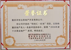 ? 2006年,洋世達(dá).陽光匯榮獲“2006年重慶地產(chǎn)創(chuàng)新樓盤”稱號