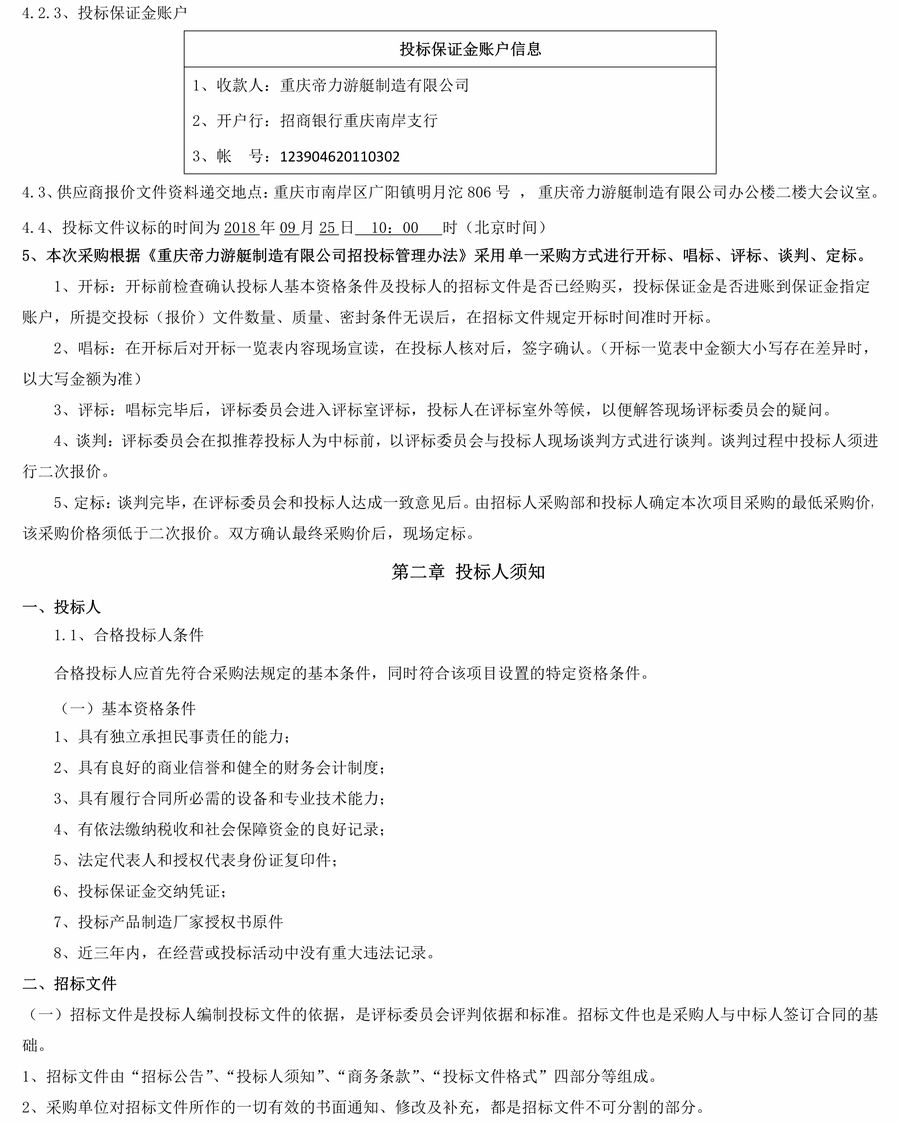 重慶市港航管理局20米工作艇發(fā)動機組招標...