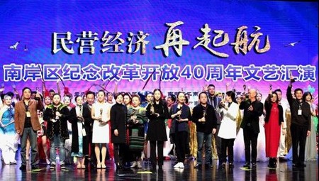 2018年10月30日,由南岸區(qū)委統(tǒng)戰(zhàn)部、南岸區(qū)工商業(yè)聯(lián)合會(huì)(總商會(huì))主辦,南岸區(qū)民營(yíng)企業(yè)家協(xié)會(huì)承辦的紀(jì)念改革開放40周年“民營(yíng)經(jīng)濟(jì)再起航”文藝匯演在重慶施光南大劇院隆重舉行。