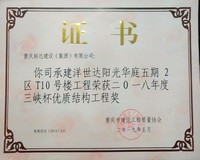 ? 2019年5月,洋世達陽光華庭五期2區T10號樓工程榮獲重慶市建筑工程質量協會頒發的“二O一八年度三峽杯優質結構工程獎”