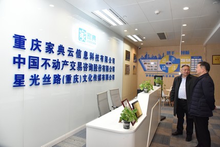 隨后,歐副主任一行驅車來到重慶家典云信息科技有限公司,參觀了解了家典不動產交易平臺及線上智慧社區的運營和服務情況。