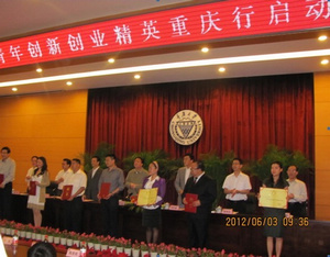 2012年6月3日上午,由共青團重慶市委、重慶市青年聯(lián)合會、重慶市青年企業(yè)家協(xié)會、重慶市青年商會、重慶市青年創(chuàng)新創(chuàng)業(yè)基金會主辦的“中國青年創(chuàng)新創(chuàng)業(yè)精英重慶行”啟動儀式暨青年創(chuàng)新創(chuàng)業(yè)導師團首場報告會在重慶大學民主湖學術(shù)報告廳舉行。重慶市人大常委會黨組副書記、副主任余遠牧,中國工程院院士、中國科協(xié)副主席、全國青聯(lián)副主席、中星微電子有限公司董事長鄧中翰,重慶市委副秘書長羅慶宏等相關(guān)領(lǐng)導出席了啟動儀式,本次啟動儀式由共青團重慶市委書記、黨組書記周波主持。