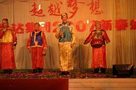 精彩的文藝匯演于下午2:30在金色大廳準時開始。一陣熱鬧的大鼓后,一群可愛的孩子快樂登場給大家拜大年。集團公司董事長、總裁楊勇發表了熱情洋溢的新年賀辭,并宣布文藝匯演正式開始。在16個文藝節目表演過程中,各個公司都拿出了看家本領,表演了自編自演、精心排練的舞蹈、小品、獨唱、諧劇、時裝秀等文藝節目。現場內,全體觀眾認真觀賞一個個精彩的節目,興奮地參加游戲,臉上充滿了笑容,一片快樂祥和!