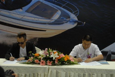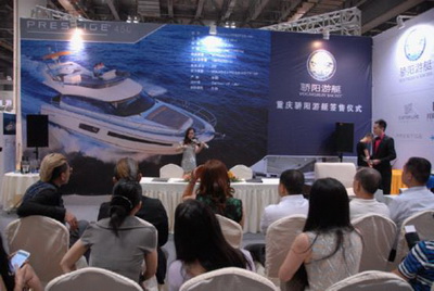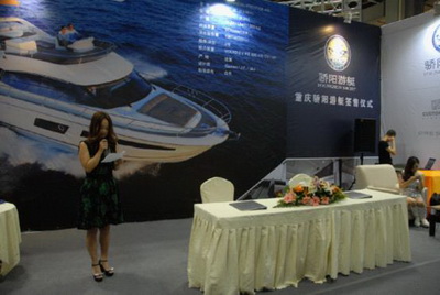 9月18日,“2013中國重慶國際休閑產(chǎn)業(yè)博覽會”在南坪重慶國際會議展覽中心盛裝啟幕。上午10時許,重慶驕陽游艇公司與灣弘娛樂公司舉行了“法國亞諾新450游艇簽約儀式”。此活動作為休博會期間的重頭戲,正式拉開了驕陽游艇系列活動的帷幕。